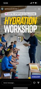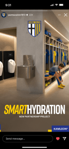 Hydration reminders placed in key locations at Parma Calcio facilities to encourage daily water consumption